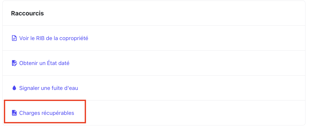 ou directement sur votre Tableau de Bord en cliquant sur “Charges récupérables”.