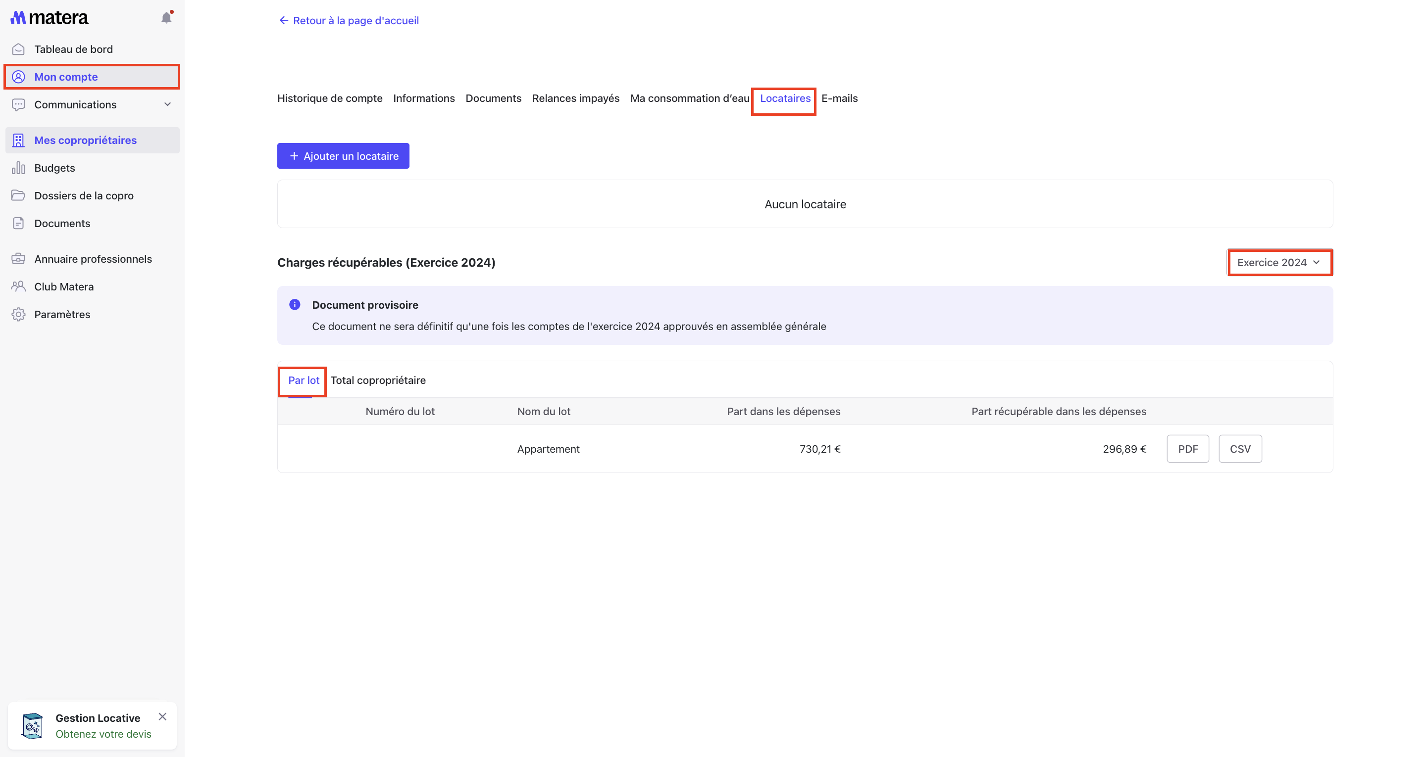 Le document peut par ailleurs être téléchargé par lot, via Mon compte > Locataires > par lot