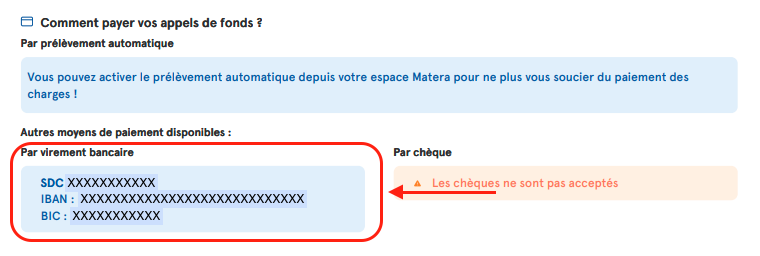 En bas de votre appel de fonds, le RIB de votre copropriété est indiqué, vous pouvez alors procéder à un virement bancaire.
